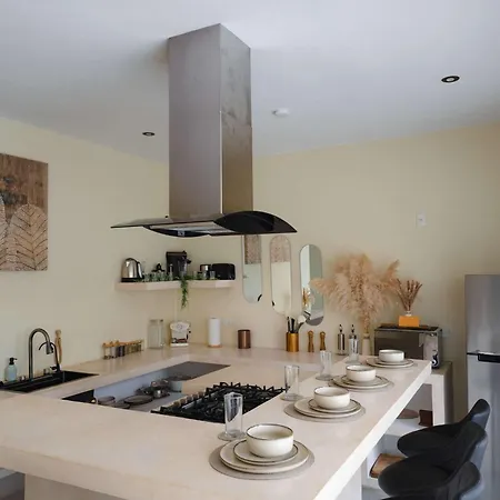 Die Modern Luxury Villa With Large Pool - Bbq Grill hat eine voll ausgestattete Küchenzeile mit einem Wasserkocher, einem Kühlschrank und einem Herd. Gäste können im Restaurant Portal Tulum At Lanka speisen, das lediglich 1 Kilometer von hier entfernt ist. Die Villa liegt außerdem in etwa 900 Meter Entfernung von der Bushaltestelle Vanes foraneas.